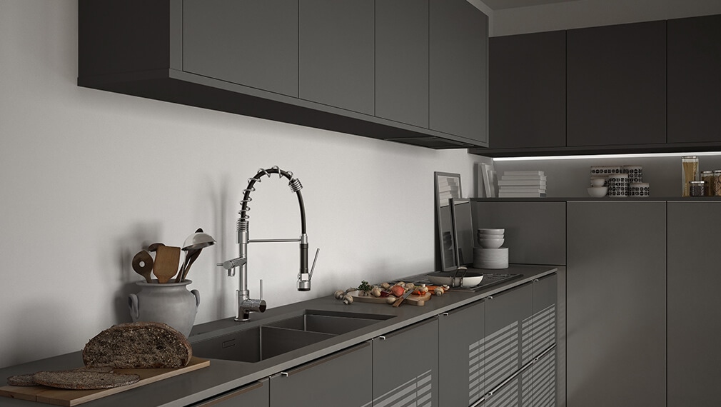 The right mixers not only ensure reliable use and comfort of everyday kitchen activities, but also beautifully decorate the kitchen interiors. Black accessories are a trend that is also present in kitchens, and thanks to Ferro, you can choose a mixer model with this finish that perfectly matches the interior, both in terms of style and functionality. From black mixers, through compositions with chrome, to graphite ones that match granite sinks.