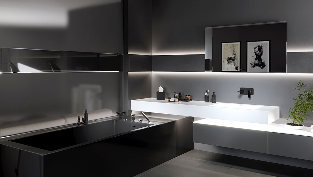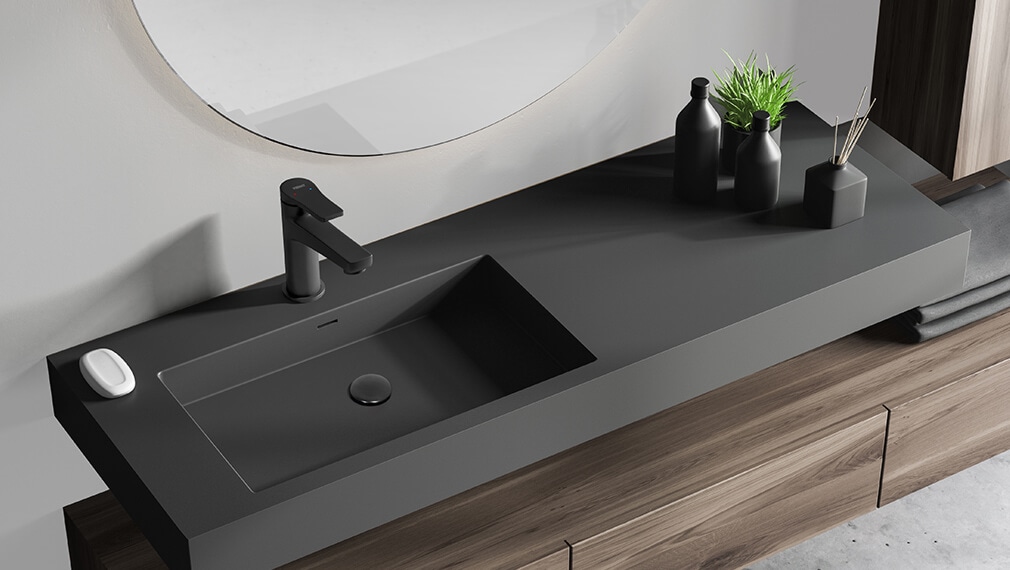 Are you looking for unique mixers, unique design and a beautiful matt finish? The Stratos Black line is an example of an ideal blend of modern form with a matt black finish. This duo makes the line highly acclaimed, fitting perfectly into simple monochromatic interiors and with dark ceramic tiles. The blackness of the Stratos Black mixers creates a perfect match for bathrooms where minimalism and modern simplicity are prevailing, but it will also work well with other styles, such as Art Deco or ascetic minimalism, bringing out different interesting features in each of these styles.