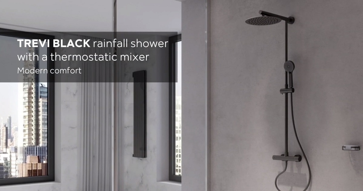 Trevi Black and Trevi Black Square is a true black pearl for lovers of comfortable showering. The thermostatic mixer ensuring the water temperature at a desired level and the large rainfall shower head provide extraordinary comfort and relaxation in the shower.